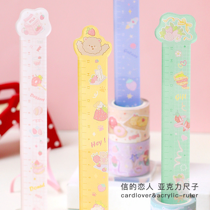 创意网红少女心卡通ins手帐亚克力尺子刻度尺多功能胶带收纳文具热门设计联盟服务商